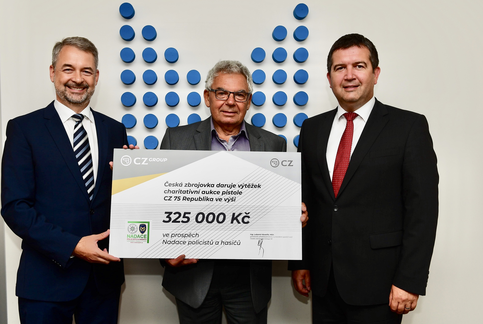 Tento finanční obnos byl předán panem Ing. Lubomírem Kovaříkem, prezidentem ČZ z výtěžku charitativní aukce pistole Republika. Pistole s označením CZ 75 REPUBLIKA s označením roku 1918, tedy rokem, kdy byla založena Československá republika, byla pistole vyrobena k oslavě stého výročí založení Československé republiky. Ke sběratelské hodnotě a vydražené částce již tak ojedinělé zbraně jistě přispělo i to, že během březnové návštěvy daroval premiér České republiky Andrej Babiš jednu z těchto vyrobených pistolí prezidentovi Spojených států amerických Donaldu Trumpovi.