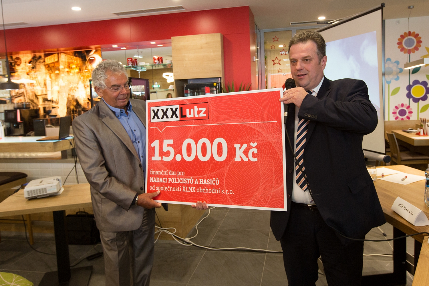23. května v Praze, ředitel XXXLutz pro Česko, Walter MÜLLER u příležitosti otevření nového obchodu v Praze na Černém Mostě, předal šek Nadaci policistů a hasičů ve prospěch nadačních rodin.