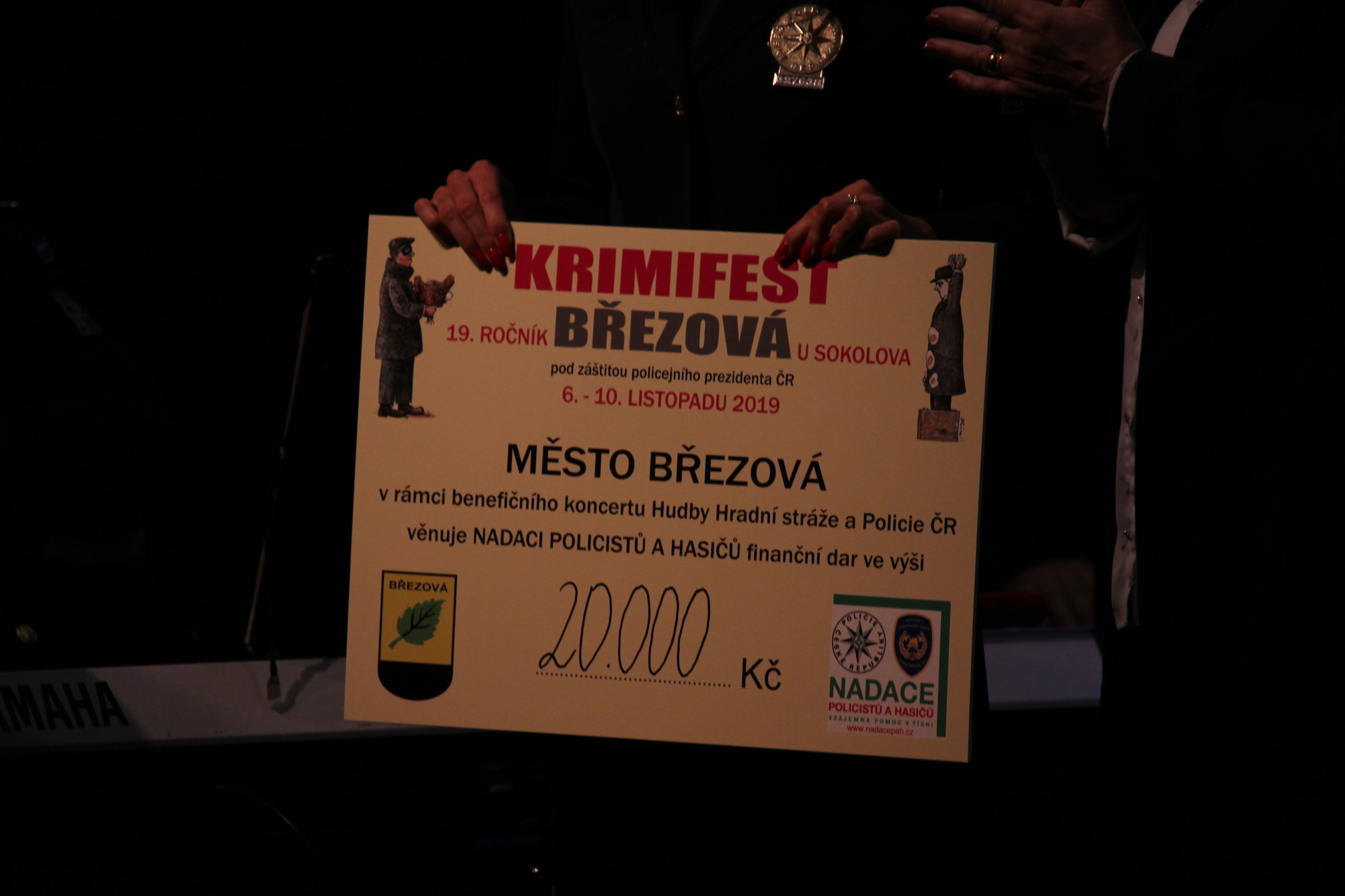 Mgr. Michal Bedeč: „Koncert Hudby Hradní stráže a Policie ČR patřil v uplynulých ročnících KRIMIFESTU vždy k jeho neodlučitelným stálicím, proto jsme rádi, že se nám na tuto tradici podařilo navázat. A navíc když jsme i samotným koncertem mohli pomoci potřebným, v tomto případě konkrétně Nadaci policistů a hasičů, která se stará o děti policistů a hasičů, kteří zemřeli při výkonu povolání a o těžce tělesně postižené bývalé policisty a hasiče, kteří utrpěli úraz při službě. Od roku 2018 pomáhá všem aktivním policistům a hasičům, kteří se dostali do nepředvídatelné životní situace. Celkem se na vstupném a na dobrovolných příspěvcích podařilo vybrat pěknou sumu přesahující částku 17.000 Kč, za což bych rád poděkoval všem přítomným návštěvníkům, kteří se tak na finančním daru podíleli. Vedení Březové nakonec darovanou částku navýšilo a Nadaci tedy věnuje, stejně jako před dvěma lety, celkem 20.000 Kč.“