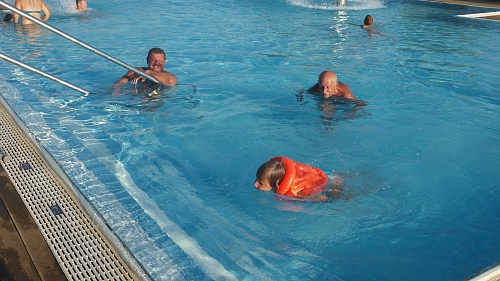 V rámci pobytu využívali nadační rodiny krytého hotelového bazénu, venkovního bazénu, kde pravidelně každý den probíhalo rehabilitační cvičení.