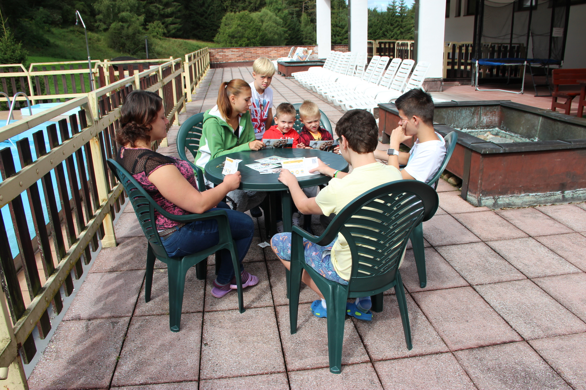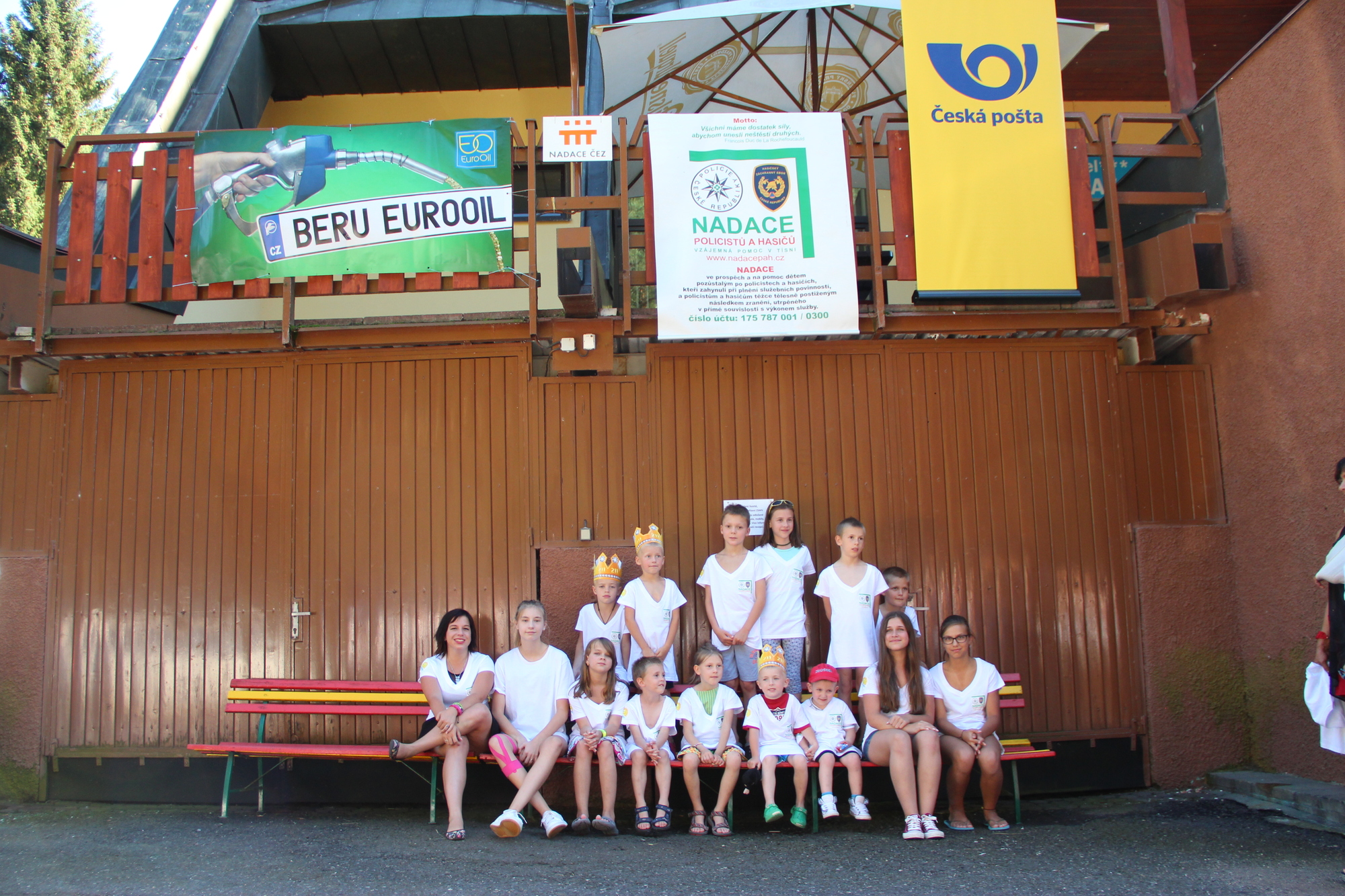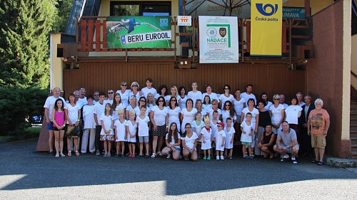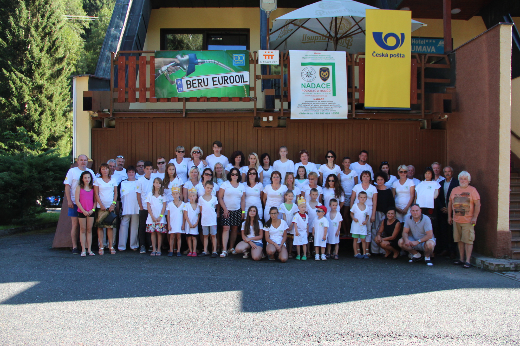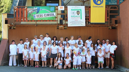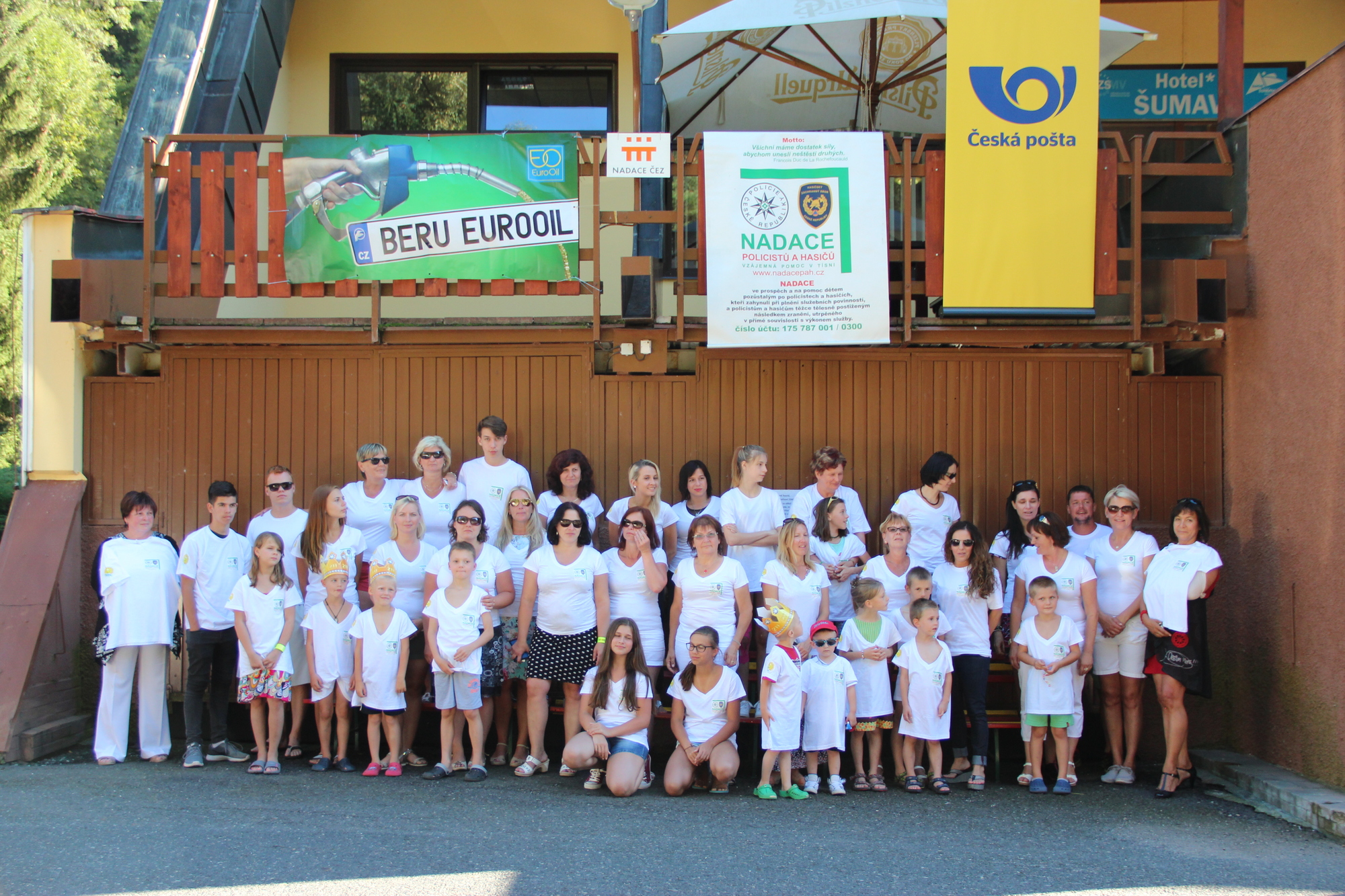 Už počtvrté padla volba na hotel Zařízení služeb MV ČR Šumava v Kašperských Horách. Je těžké umístit do pohodlného objektu více než sedmdesát pět nadačních svěřenců a deset hostů. Pro malé a menší děti je tam ideální a bezpečné prostředí, pro rodiny s velkými studenty dobrá základna pro výlety. Permanentně užívaný byl bazén, trampolína, dětské hřiště s houpačkami a prolézačkami, zahrada, hřiště, tělocvična, pro větší posilovna. A pro všechny wellness – jako v lázních. Dny plné tepla a sluníčka doplňoval pestrý program. Pouť v nedalekém Rejštejně i s projížďkou na staré hasičské cisterně, dvě pěší túry, návštěva místní sklárny, poutavá zdravotní přednáška, diskotéka s tombolou kde každý vyhrál, dvoudenní sportovní olympiáda pro děti všech kategorií i dospělé, kterou profesionálně připravily Pavlínka s Adélkou, včetně vyhlášení olympijských cen a medailí. Vyjednaná byla návštěva v Aquparku v Sušici. Ke konci týdne se pořádal tradiční slavnostní den. Za rodinami přijela a zároveň zasedala správní rada nadace. Po jednání se zrealizovalo tradiční fotografování. A potom už byla volná zábava za skvělé produkce kvarteta Hudby Hradní stráže a Policie ČR. Večeři toho dne nahradilo grilování a různé dobroty. Byl to příjemný a bezprostředně veselý den. No, ostatně jako každý jiný. Poslední den se téměř všichni zúčastnili výletu autobusem prezidia, s příjemným panem řidičem, do líbezného kraje pod Kletí. První krátké zastavení u starobylého kostela sv. Mikuláše, v lesích bývalého vojenském prostoru, v Boleticích. Kolem poutního místa Kájov a Krumlova jsme přijeli k zahradám kláštera cisterciánů Zlatá Koruna. Skvostná perla středověkého umění. Historie, na kterou můžeme být hrdí. Zadaný test u staré mapy Evropy a Asie v místnosti kabinetu ukázal jak máme chytré děti. – Všechno věděly! – Maminky byly moc pyšné. Stěžejní zastávkou byla rozhledna na Kleti. Tam i zpět jsme se všichni dopravili jedno sedačkovou lanovkou. Trocha adrenalinu, ale zároveň dvacetiminutové rozjímání v tichém lesním průseku. Nahoře daleký výhled, i když trochu zamlžený. Alpy v horkém letním oparu vidět nebylo. Krátká zastávka na výbornou polévku a obložené chleby a zase na lanovku. Za Holubovem jsme odbočili na Prachatice. A čekalo nás jedno, skoro zapomenuté, mystické místo. Zřícenina hradu a kláštera Kuklov. Okolní prostory citlivě, přírodně, upravené. Kouzlo ducha. Při vstupu do dvorany jsme byli svědky i roztomilé akce. Místní dětský tábor právě pořádal keltskou svatbu. Ani se nám nechtělo dál pokračovat. Ale čekaly nás ještě Prachatice. Historické unikátní renezanční jádro města. Chvilka na malý nákup upomínkových předmětů a zmrzlinu. – Po večeři posledního dne pobytu nastalo takové zvláštní ticho i smutek. Je konec toho veselého týdne s kamarády, kteří jsou jak bratři a sestry. Za pár dnů už čeká škola s každodenními povinnostmi i starostmi.