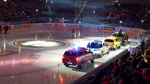 V úterý před zápasem předcházel slavnostní ceremoniál se zapojením složek IZS, který uvedla státní hymnou Hudba Hradní stráže a Policie ČR. Před a během utkání byly představeny hrdinské činy vybraných policistů, hasičů, záchranářů a vojáků. O přestávce byly předány Nadaci policistů a hasičů dva šeky, 90 000 Kč od HC Sparty Praha a šek s částkou 100 000 Kč předal generální ředitel Jan Laube z Import Ford. Za nadaci šeky převzaly brig. gen. Mgr. Bc. Tomáš Tuhý, člen správní rady nadace a úřadující policejní prezident a brig. gen. Ing. Drahoslav Ryba, člen správní rady nadace a úřadující generální ředitel HZS ČR.