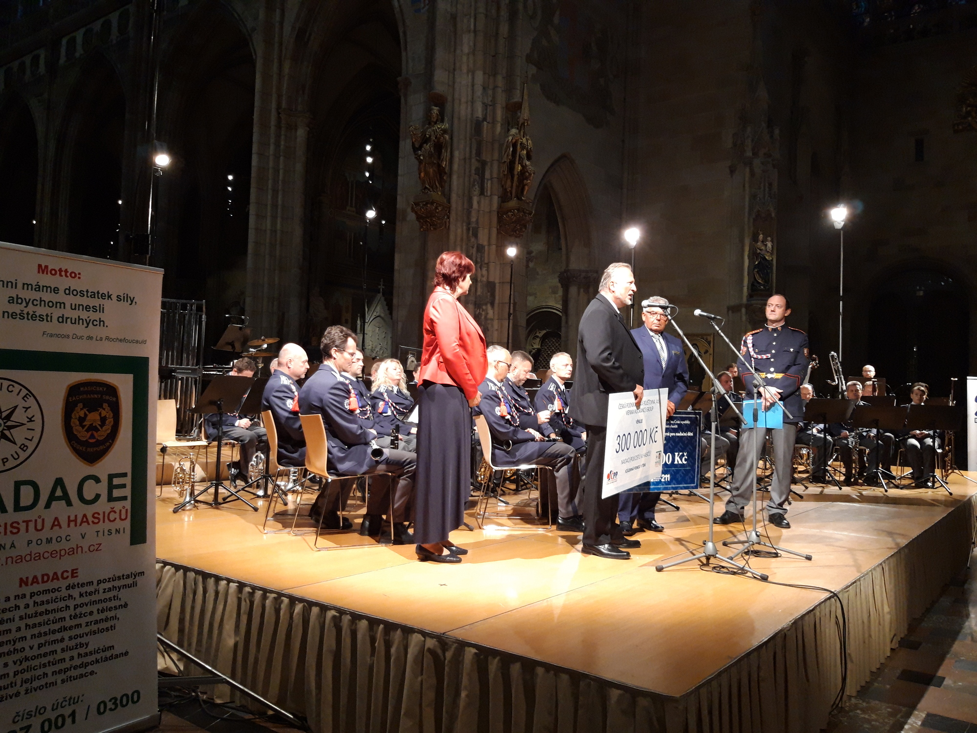 V předvečer státního svátku svatého Václava, patrona země České, se konal v katedrále sv. Víta v Praze tradiční slavnostní koncert Hudby Hradní stráže a Policie České republiky na podporu Nadace policistů a hasičů – vzájemná pomoc v tísni. Tentokrát byl koncert uveden „K poctě Václava Nelhýbela“ čechoamerického hudebního skladatele k jeho 100. výročí narození. Skladby Leoše Janáčka, Petra Ebena a Václava Nelhýbela byly inspirované svatováclavským chorálem. Náročnou hudbu doplňovala obdivuhodná sóla na trombón, basový trombón a eufonium. Slavnostní večer navodil atmosféru nastávajícího svátečního dne. Během koncertu nadace převzala darovací šeky. Vřele za ně děkuje Zdravotní pojišťovně Ministerstva vnitra ČR a České podnikatelské pojišťovně, a.s., Vienna Insurance Group. Obě pojišťovny provázejí nadaci po celé její sedmnáctileté působení, stejně tak jako Hudba Hradní stráže a Policie České republiky se svými dirigenty a sólisty. Tomuto hudebnímu tělesu nadace děkuje za nevšední zážitek.