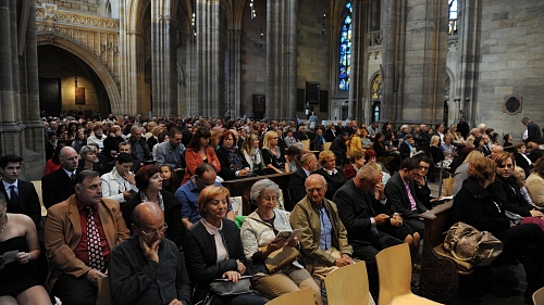 Zcela zaplněná katedrála s nadšením vyslechla oratorium pro sbor, sólisty a orchestr, které se věnovalo hudebním částem korunovačního obřadu. Provázelo posluchače jednotlivými fázemi korunovace od slavnostního ranního průvodu až k závěrečnému holdování stavů.